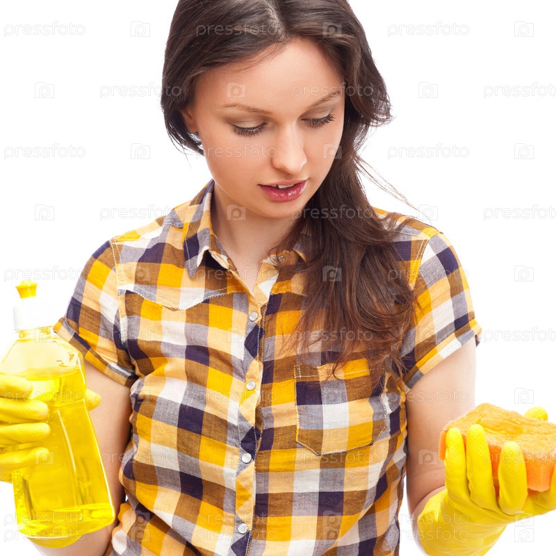 Портрет домохозяйки. Изолировано на белом фоне. Концепция уборки