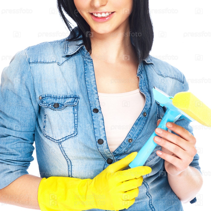 Портрет домработницы, изолированный на белом фоне. Концепция клининговых услуг
