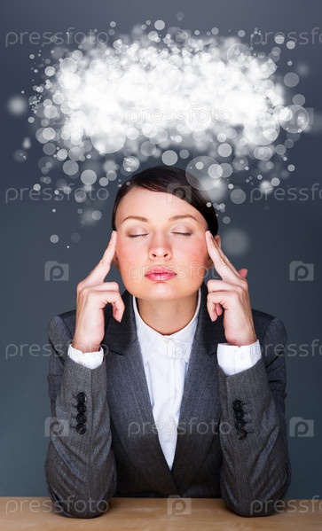 Бизнес-леди думает о чем-то на сером фоне