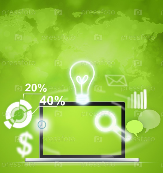 Открытый ноутбук с иконками различных функций