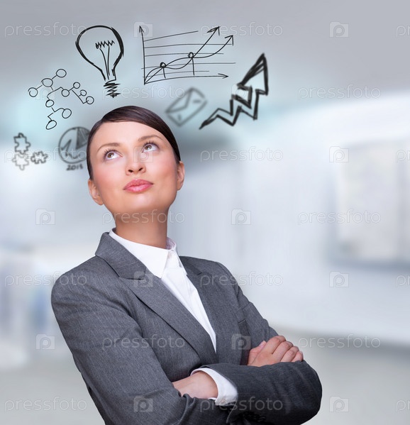 Молодая деловая женщина думает о своих планах