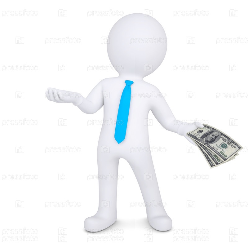 3D человек с деньгами протягивает руку