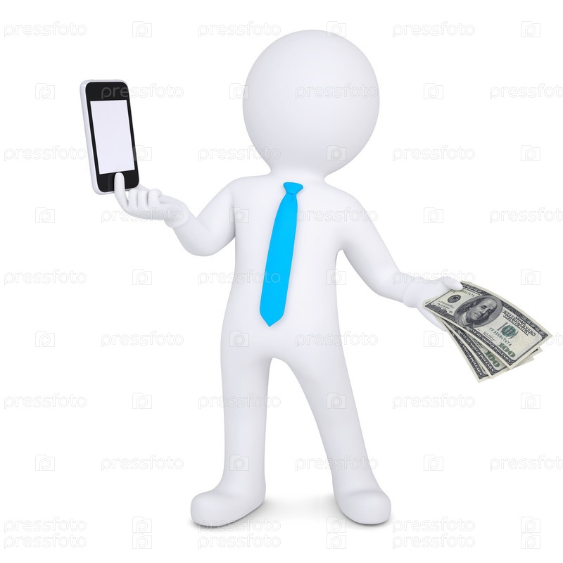 3D-человек обменивает свой смартфон на деньги