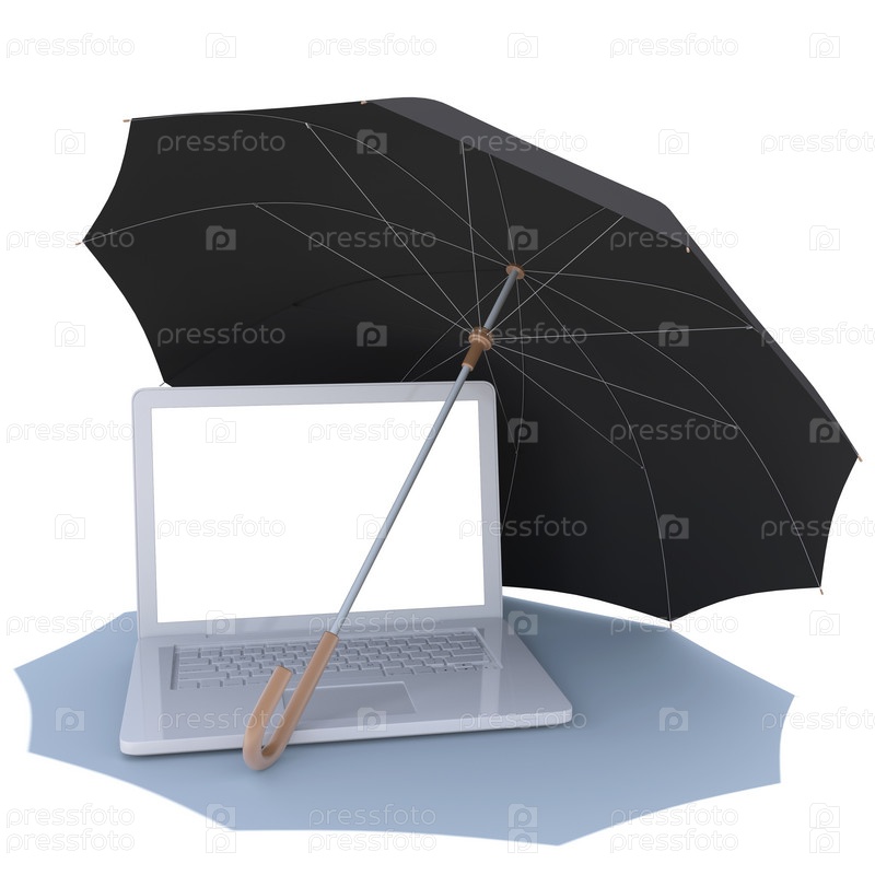 Зонт закрывает ноутбук