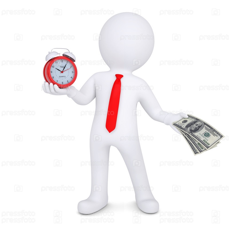 3D-человек меняет будильник на деньги