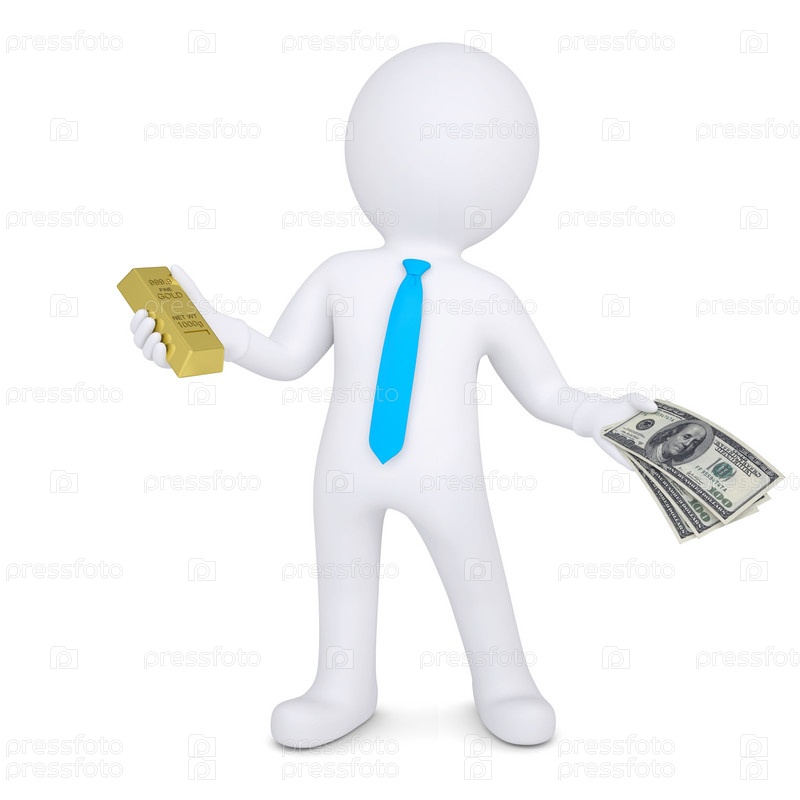 3D-человек меняет золото на деньги