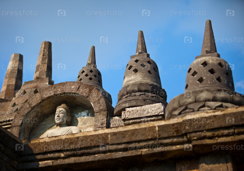 Фрагмент каменного храма Боробудур на острове Ява, Индонезия