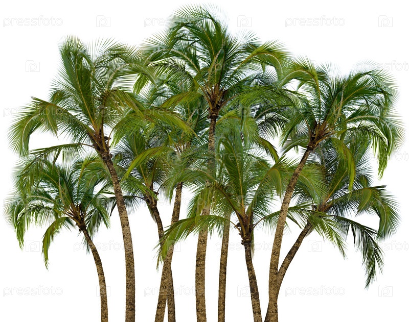 Группа пальмовых деревьев на белом фоне