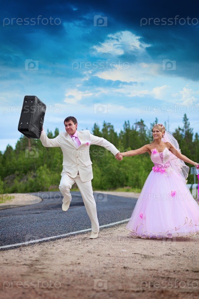 Жених с чемоданом спешит на медовый месяц