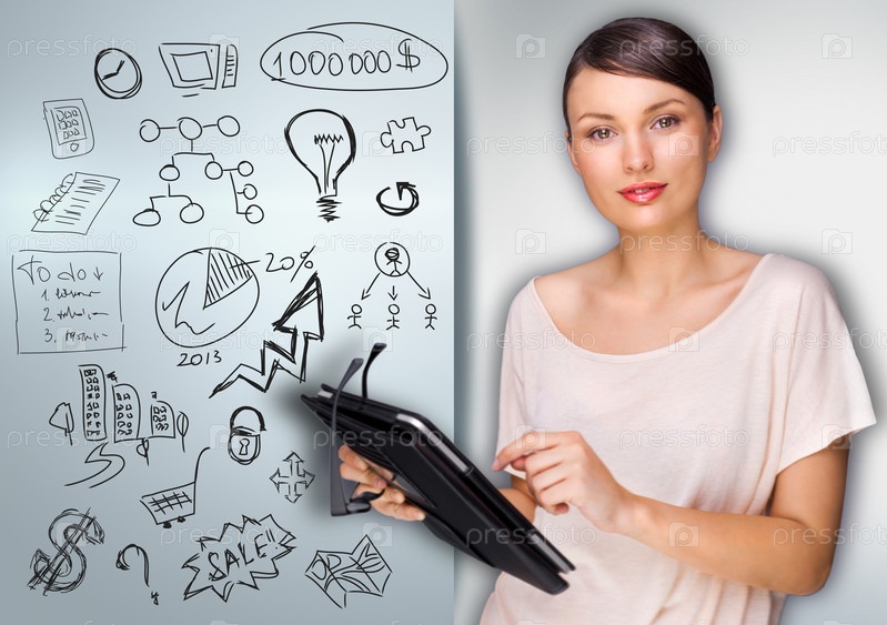 Деловая женщина строит планы с планшетным компьютером