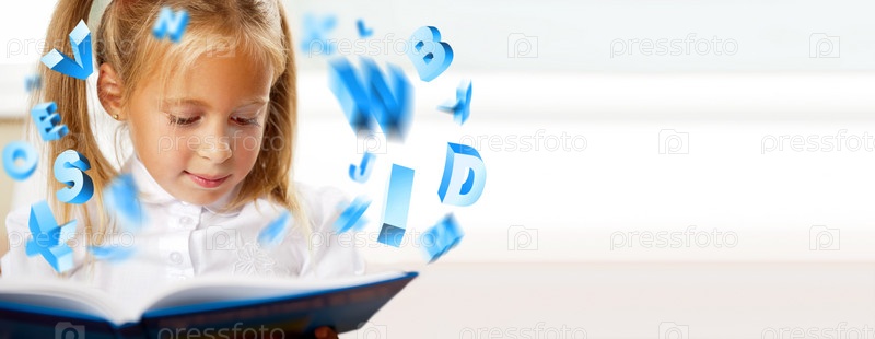 Портрет девочки иконками различных уроков вокруг нее