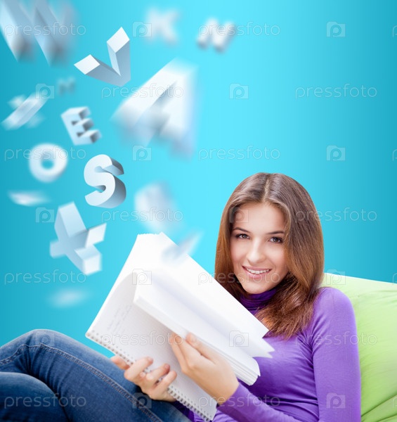 Молодая красивая женщина читает книгу дома