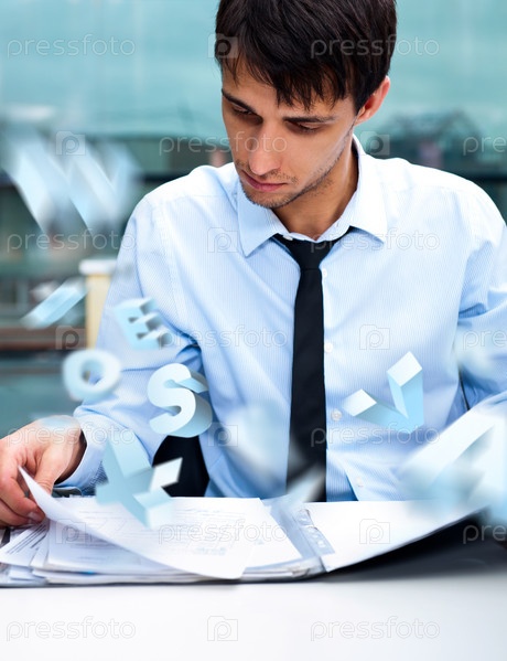 Бизнесмен читает и подписывает документы в офисе