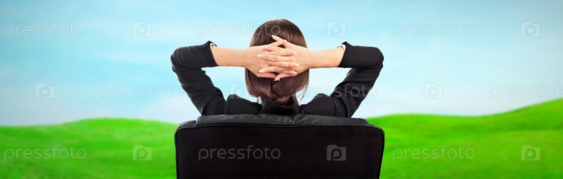 Делова женщина отдыхает на природе