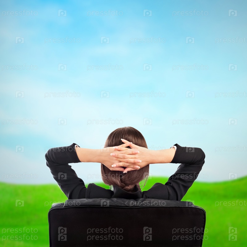 Делова женщина отдыхает на природе