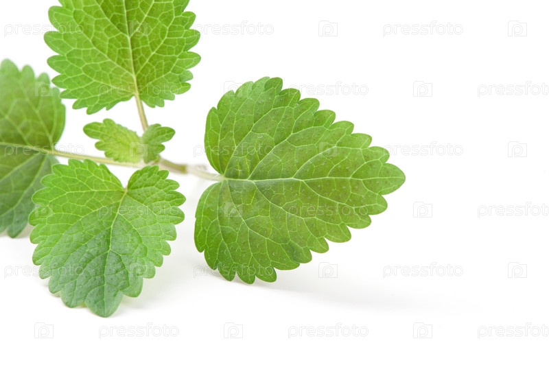 Свежие зеленые листья мелиссы на белом фоне