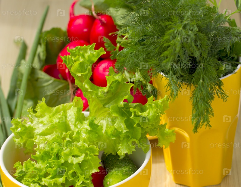 Свежие зелень и овощи для салата