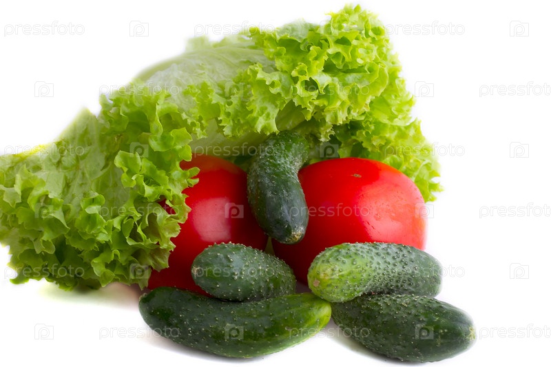 Томаты, огурцы и листья салата
