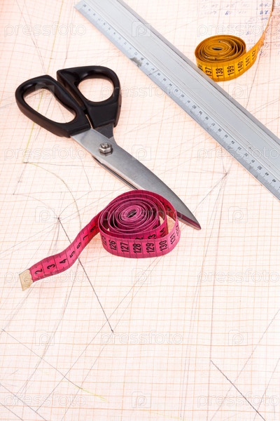 Портняжные инструменты на миллиметровой бумаге
