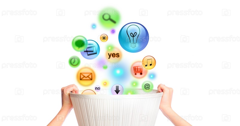 Корзина в руках человека и различные иконки внутри