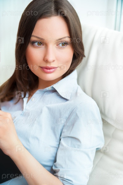 Портрет красивой молодой женщины у окна