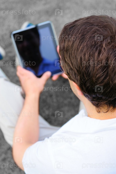 Расслабленный мужчина с планшетным компьютером