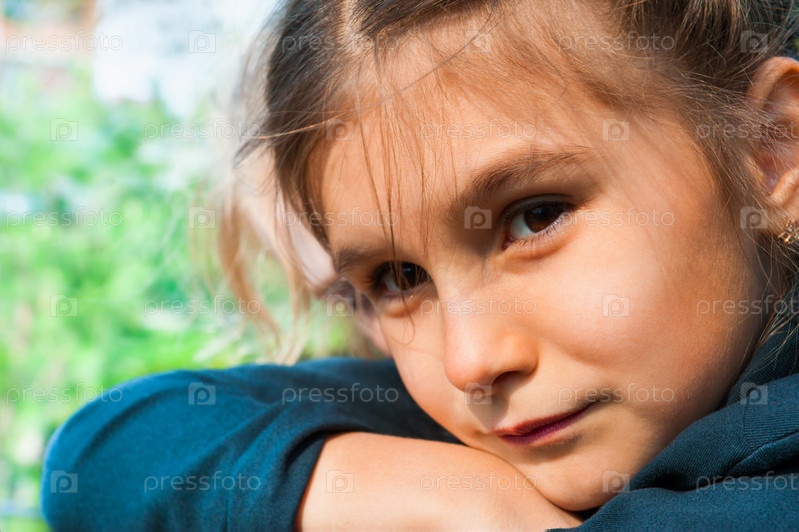 Милая маленькая девочка смотрит в камеру во время отдыха в парке