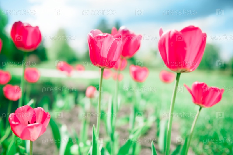 Красивые тюльпаны на фоне драматического неба