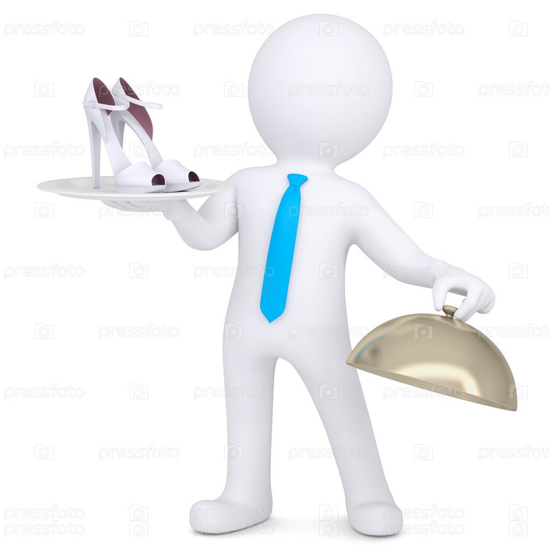 3D-человек, держащий женские туфли на тарелке