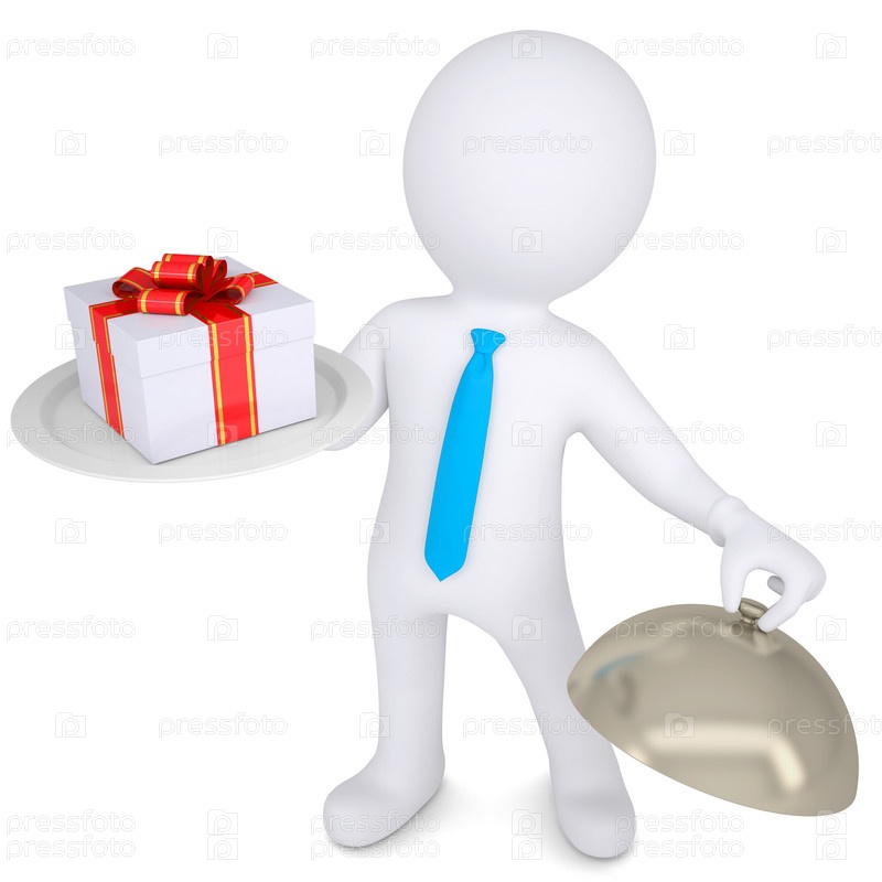 3D-человек, держащий подарочную коробку на тарелке