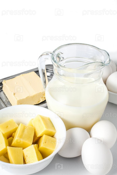 Свежие молочные продукты на белом фоне