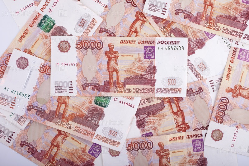 Фон из пятитысячных российских купюр