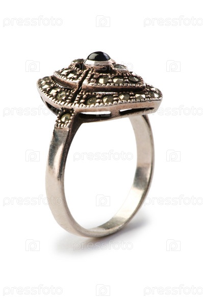 Кольцо с черными камнями на белом фоне