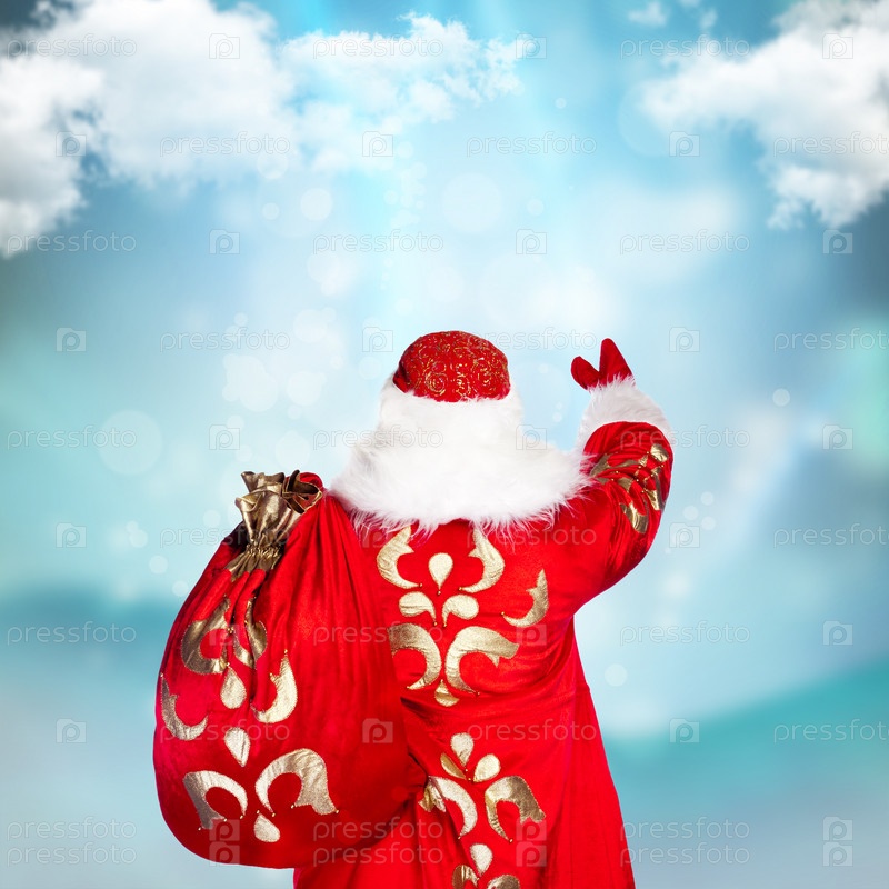 Санта-Клаус творит волшебство, вид сзади