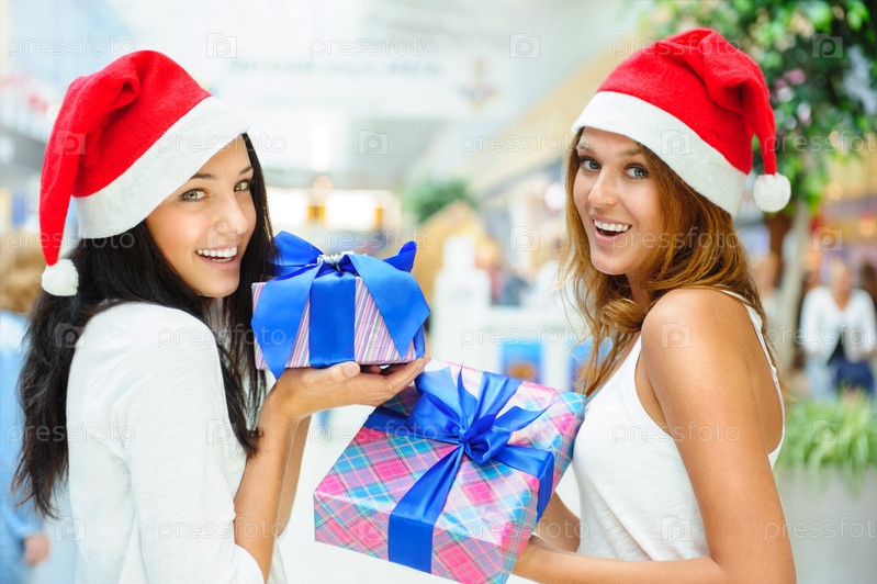 Счастливые девушки в Рождество