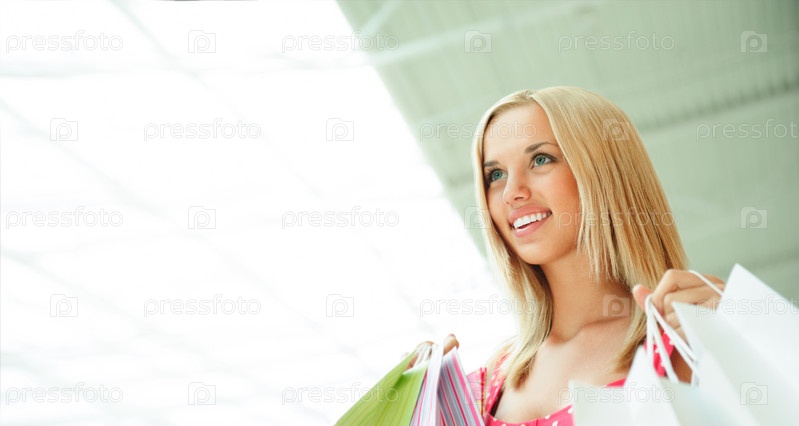 Красивая женщина в торговом центре с сумками
