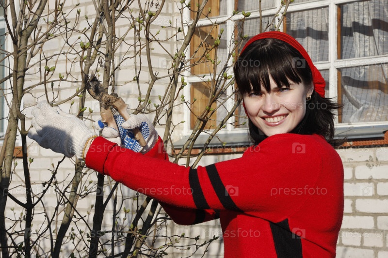 Женщина обрезает сухие ветки
