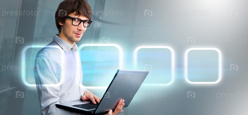 Молодой сотрудник с ноутбуком