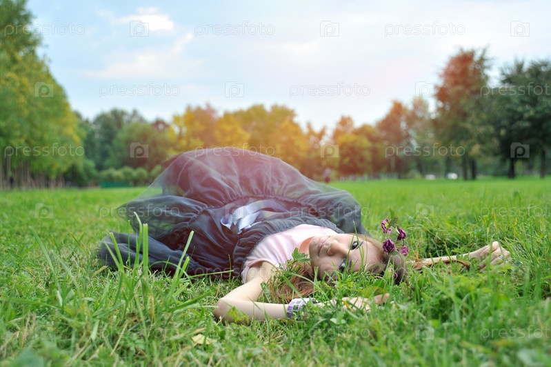 Девушка в венке лежит на траве