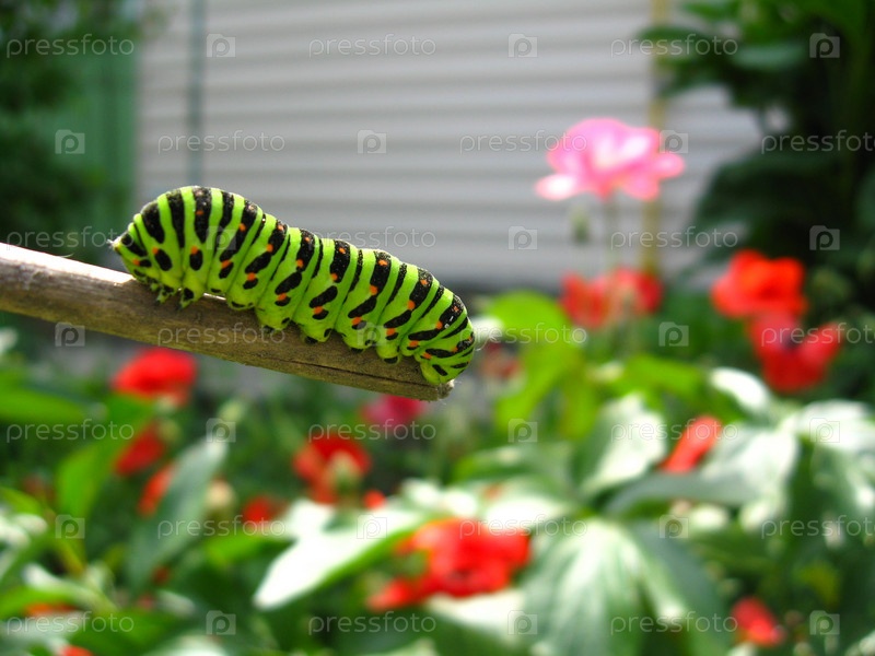 Гусеница бабочки махаон на палке