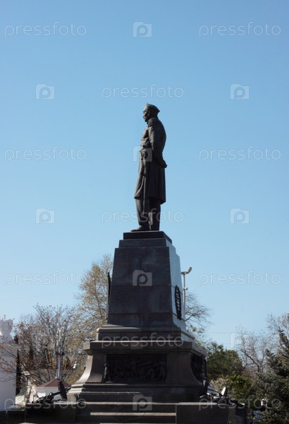 Вид сбоку на памятник адмиралу Нахимову на площади города Севастополя