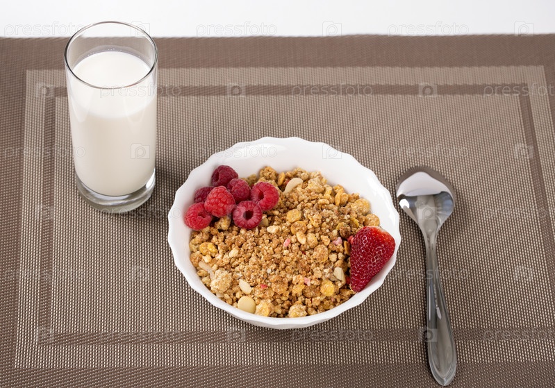Хлопья с ягодами и молоком