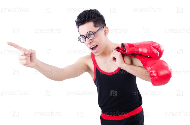 Смешной боксер, изолированный на белом фоне