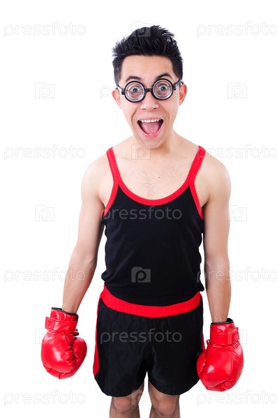 Смешной боксер, изолированный на белом фоне