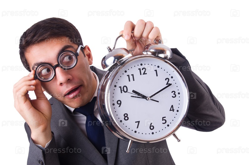 Бизнесмен с часами, изолированный на белом
