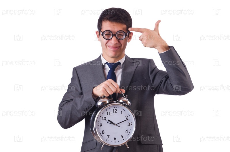 Бизнесмен с часами, изолированный на белом