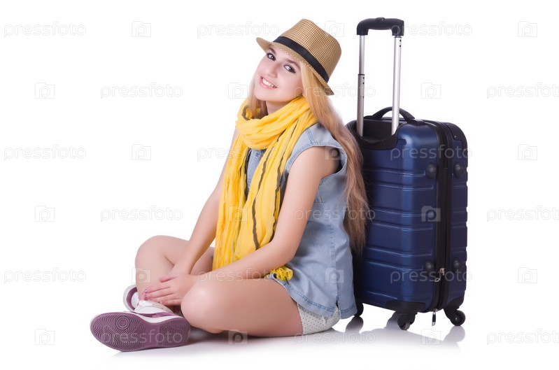 Молодая девушка путешественник, изолированная на белом
