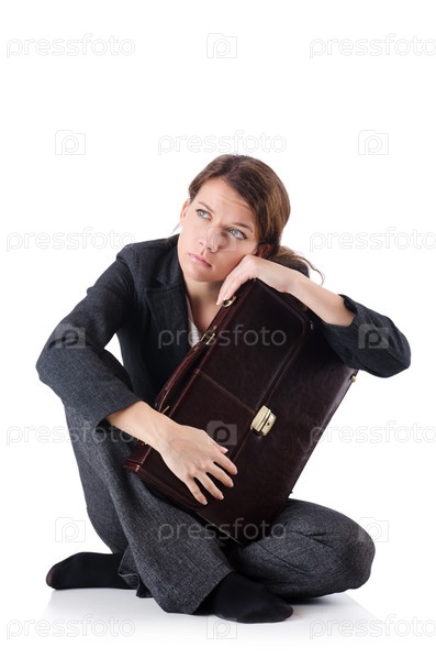 Обанкротившаяся деловая женщина, изолированная на белом фоне