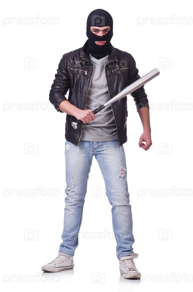 Хулиган с битой на белом фоне
