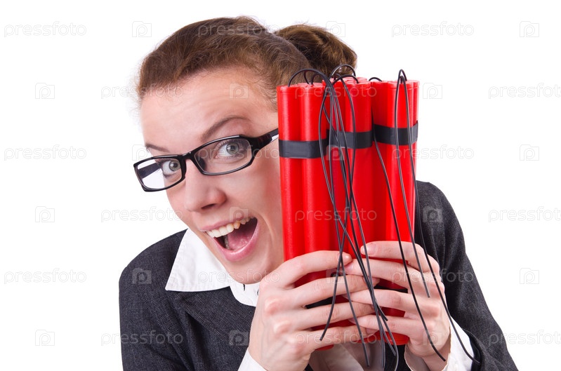 Бизнес-леди с динамитом на белом